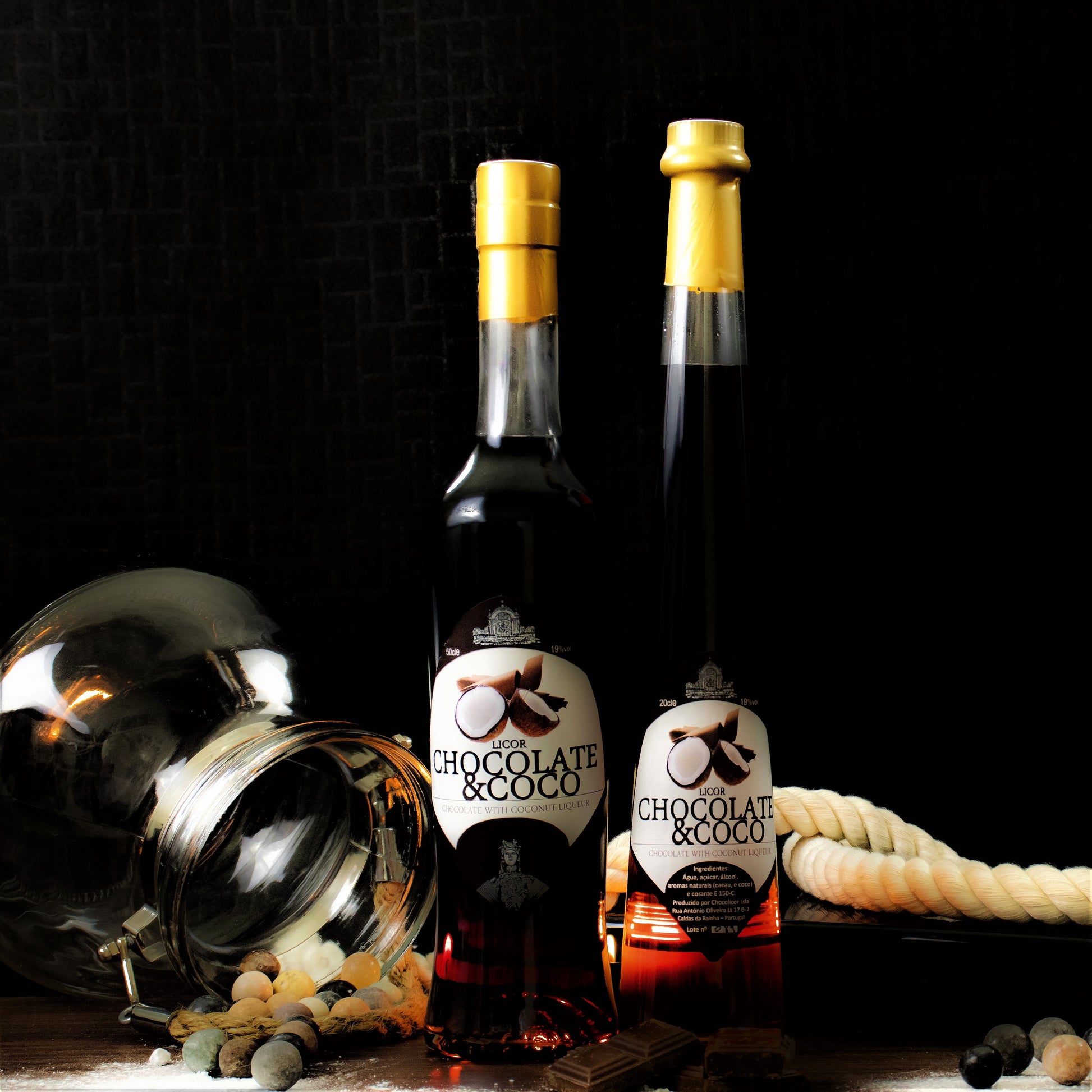 O Licor de Chocolate com Coco é um produto que resulta da adição de aroma natural de cacau à frescura do coco. O produto final é um licor de consistência licorosa, com aroma e sabor a chocolate e a coco. Um licor ideal para se beber em todas as estações do ano ou mesmo para incluir nos seus cocktails.
